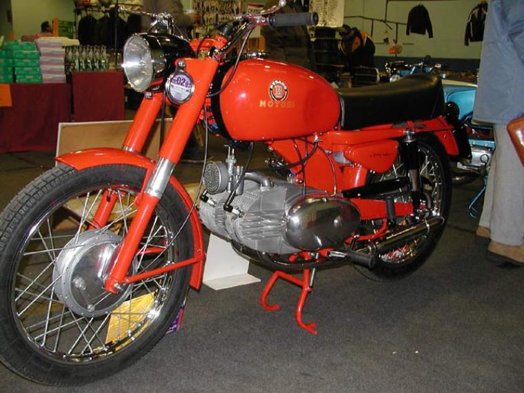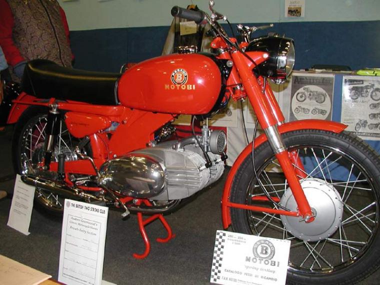 Add Your Photos!A rare 200cc twin two-stroke seen at the Malvern Classic Bike Show. This was first made in 1953 at Pesaro, Italy and was founded by one of the Benelli brothers. The factory also produced a very succcessful 250cc racer based on the same engine.