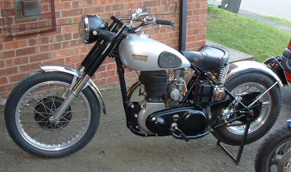 Thanks to John Battle for these pictures of his 1954 Norton Big 4. It’s a 600cc sidevalve single that was previously in a ‘customised’ form (2″over forks, forward controls and homemade seat with sissy-bar). It blew up when on a holiday, was stripped and then ignored for a few years. He got the bike in 1989 as a few boxes of bits and a frame from an old school friend. A large mortgage and then a family stopped him doing much to it apart from the occasional rummage around an autojumble and a lot of wishful thinking. A transfer to the night shift gave him a bit of extra funds so the Norton was finally treated to the parts she needed. Cosmetically its not standard. The rear wheel is the wrong size but both rims are Akront alloys so he is not going to the extra expense of replacing them for the sake of it. The mudguards are also wrong but they are stainless steel and again why replace for the sake of it?