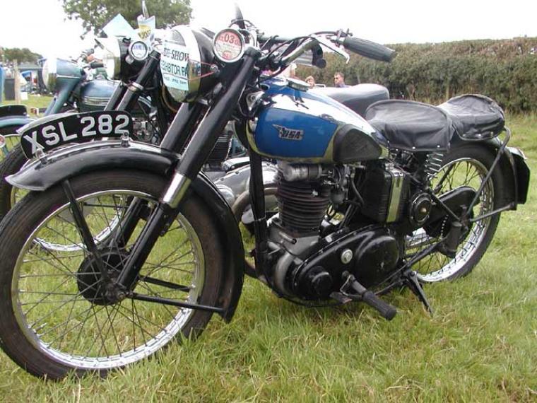 Pleased to see picture of BSA 250. C11. I think it is earliermodel at 1950 my brother had one from new purchased from Alexanders in Glasgow,did not have a dual seat originally. I hadto wait two years to get similar very few came on to home market thecountry needed the exports. Mine was exactly the same but due to restrictions very little chrome tank was blue with a dull beige colour. ,theywere advertised as sprung frame and four speed box several yearsbefore that happened.Greatbike travelled many a mile on it used it while in army to go onlea e back to home.