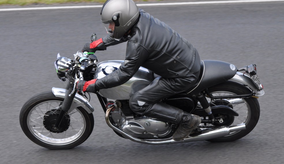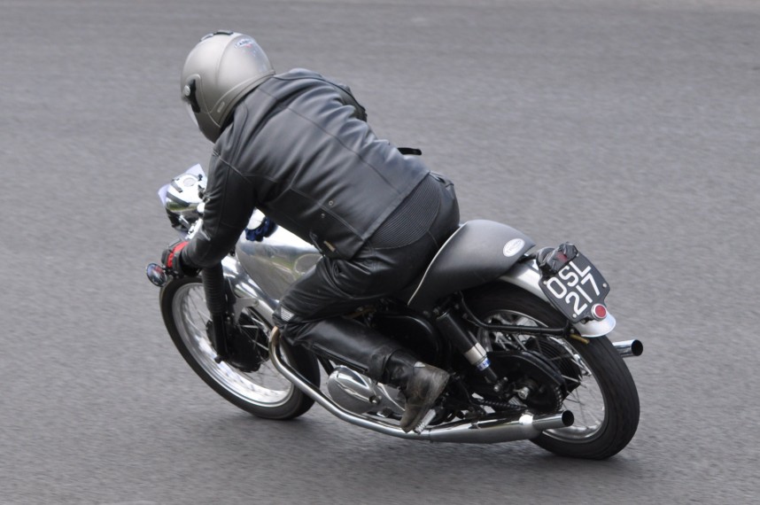 1956 TriBSA based on a Thunderbird 6T engine being ridden at Mallory Park as part of the 2011 Festival of 1000 Bikes.