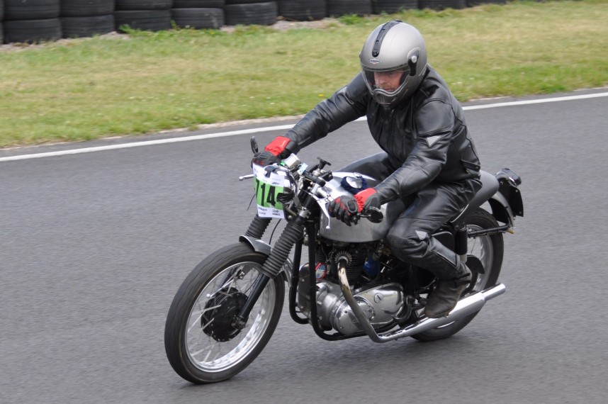 Add Your Photos!1956 TriBSA based on a Thunderbird 6T engine being ridden at Mallory Park as part of the 2011 Festival of 1000 Bikes.
