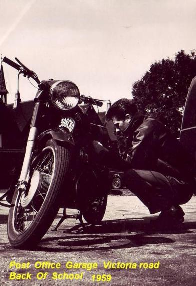 Thanks to Geoff Reynolds for this picture of himself in 1959 working on his 1953 AJS 500cc at the Post Office garage in Ashford Kent where hewas a telegram boy