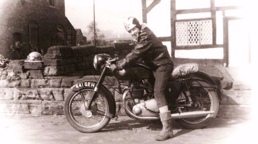 Many thanks to Mike Dowling for this picture of himself (age 15) on his brother’s BSA A7 outside Oulton Park.