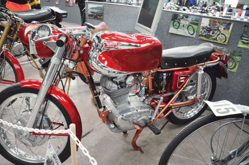 Another Italian beauty on display at the 2012 Bristol Classic Bike Show. This is a 200cc, 1961 Ducati Elite with a lovely restored finish. Note the unusual silencer.