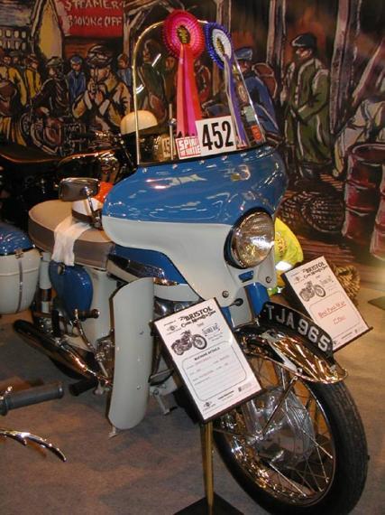Add Your Photos!Sporting a brace of rosettes, this bike won 2nd place in the Best Post War category at the 2005 Bristol Classic Bike Show. It’s a 1961 350cc Norton Navigator, seen on the rather splendid stand put together by the Malmesbury Classic Motorcycle Club – which rather unsurprisingly was the winner of best club stand (for the second year running).