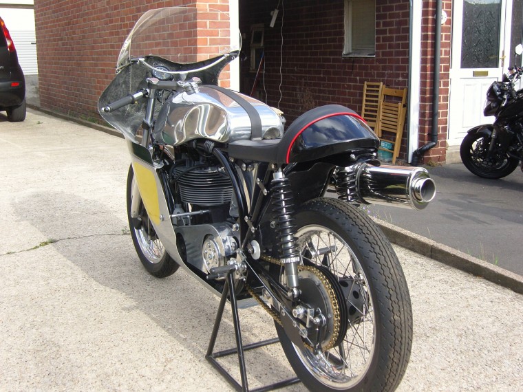 The Manx in the above photo appears to be a modern Manx replica set up for current Vintage racing, it is far, far from being a genuine works machine such as the outside-flywheel Joe Craig Manx Nortons that Ray Amm and others rode to world championships in the early 50s, or the experimental Manx or Domiracer twins that Doug Hele made handfuls of in the late 50s and early 60s.