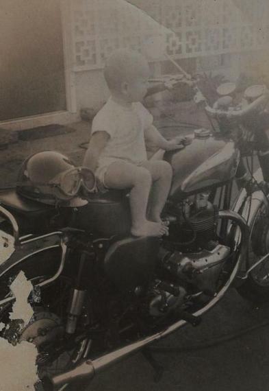 Thanks to Sam Walker for this picture of her little brother on her Dad’s BSA in California, 1965.
