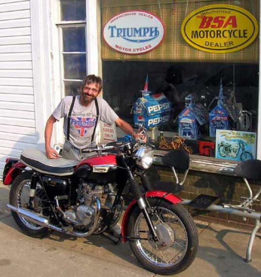 Add Your Photos!Thanks to Jacob Moore for these pictures. It’s a 1965 Tiger T90 350cc single carb. It’s in pretty nice original condition, and hadn’t run for years, but now it’s purring like a kitten again. The hairy guy at the bottom is Dale Russell aka Meely, who did the restoration work.