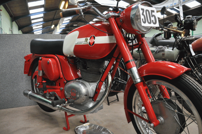 Only produced by Gilera for a couple of years, the Guibeleo is now a rare survivor. It has an air-cooled unit construction single cylinder OHV engine with an alloy barrel and head.