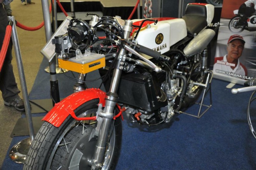 This machine on the photo is the machine we have built and not the machine on which Phil Read won the Worldchampionship (that machine does not exist anymore) Phil Read has paraded this machine several times as memebr of my Yamaha Classic Racing Team… it is a newly built historical works machine…