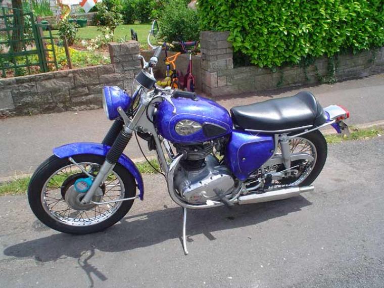 Thanks to Geoff Hearn in Devon England, for this picture of his 1970 A65 Thunderbolt. The chrome was bad on tank so he got a respray with a rolled rag effect. Looks nice!