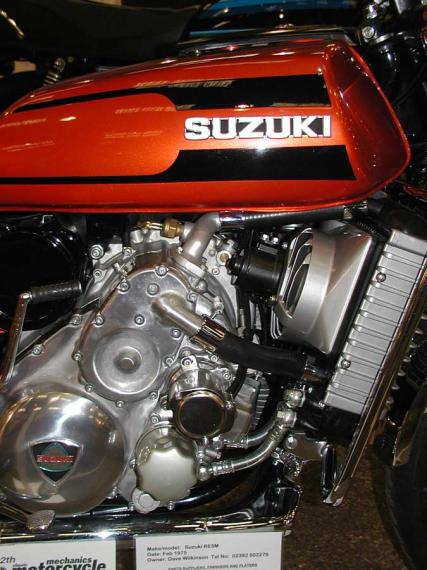 Add Your Photos!A 1975 rotary engined Suzuki RE5M. This is a 497cc machine producing 62BHP. It has recently had a new engine and casings. It originally came from Texas!. This bike was on the Suzuki Owners Club stand at the 2005 Classic Motorcycle Mechanics Show in Stafford.