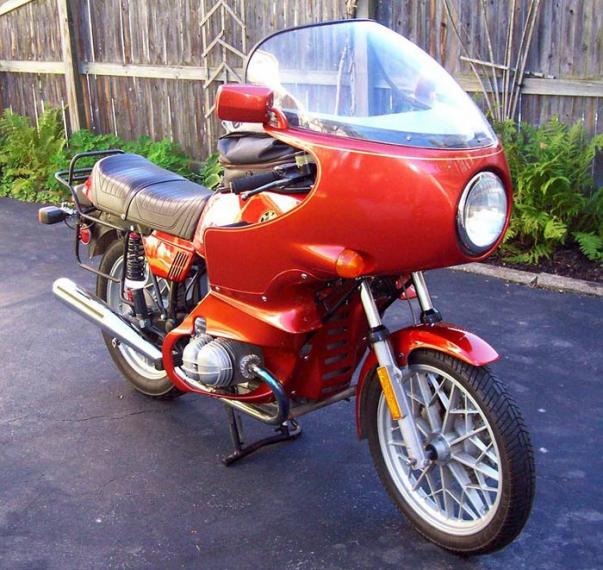 Thanks to Jim Schara for these pictures of his BMW. It is a 1979 R65 with a gorgeous Hennigan fairing. Jim is the original owner, and it has 46,000 miles on the clock.