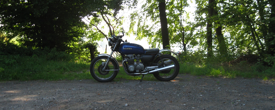 I bought this bike 2008 in an almost original state for 200 €. It came with Koni shockabsorbers and a Sito exhaust sytem. The engine was broken, though. I replaced it by a 1979 engine with old carbs. It has 50.000 km and is running fine. Then I cut off the rear part of the frame just behind the shockabsorbers. I also cut off one third of the frontfender and it works now as the rear fender. The seat is selfconstruction with a 2 mm steel groundplate. The fork, the spokerims, the brakes and the side panels come from a CB 500 four K and give the bike the old retro look. It now has small direction indicater lights and a fender rear light. Frame, tank, cockpit and steering bar and everything else is still CB 650 RC 03. But with these few easy-to-do and cheap modifications it looks much more like a CB 500 four K, doesn’t it? And it only cost me about 500 €. Would you get a CB 500 or 750 four K for that price?