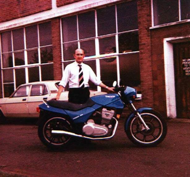 Add Your Photos!Thanks to Doug Mogano of Italy for sending this picture of a Triumph Phoenix and himself at the Triumph factory in Meriden in 1983. This bike was never produced and this example, the only one, was made of wood & clay. I wonder what happened to it?
