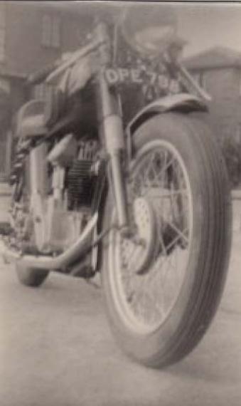 A photo sent in by Mick King of Canada of his 350cc Excelsior Manxman with BSA telescopic forks.