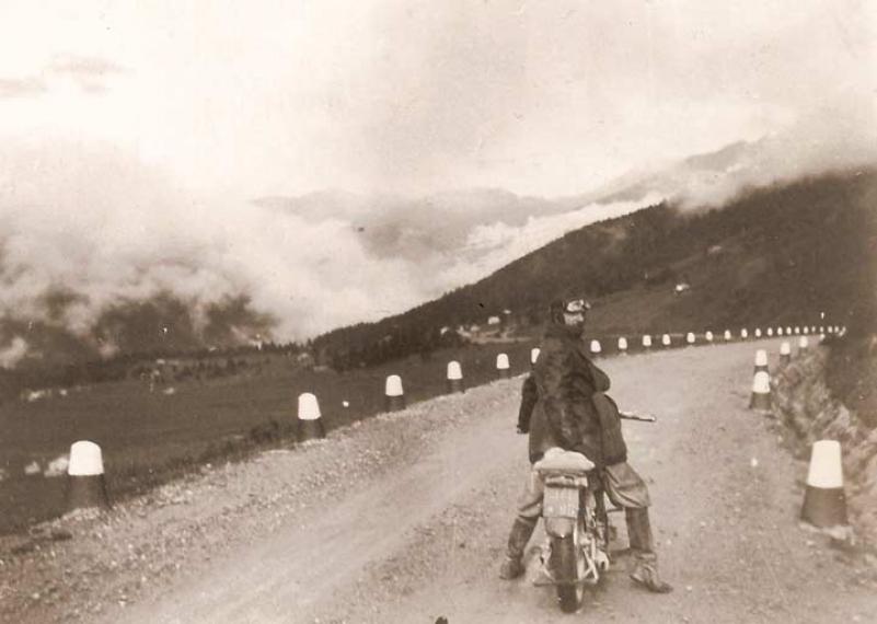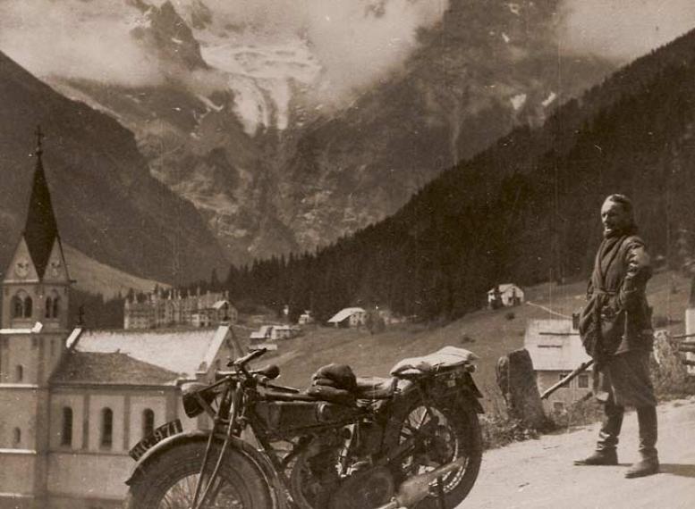 Hi there, the picture was taken at trafoi behind is the ortler in the region of the stilfser joch pass, the bike could be a 350 or 500 cc