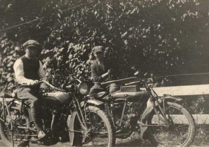 A nice old picture sent in by Andy Breeden.  The bike at the back is certainly an Indian, but I wasn’t so sure about the foremost one.  Anyhow, thanks to Leon, this one has also been identified as an Indian too.  It is an Indian Powerplus – 1918 at the earliest. The Powerplus was introduced in 1916 as the first side valve Indian. When the Chief came in (around 1922) the Powerplus was renamed the Standard so it was clear which machine was at the top of the tree.