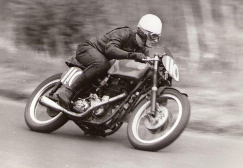 A picture of Alan Lawton racing his BSA Gold Star. The rear of the picture is inscribed "Oulton Park 1960 "