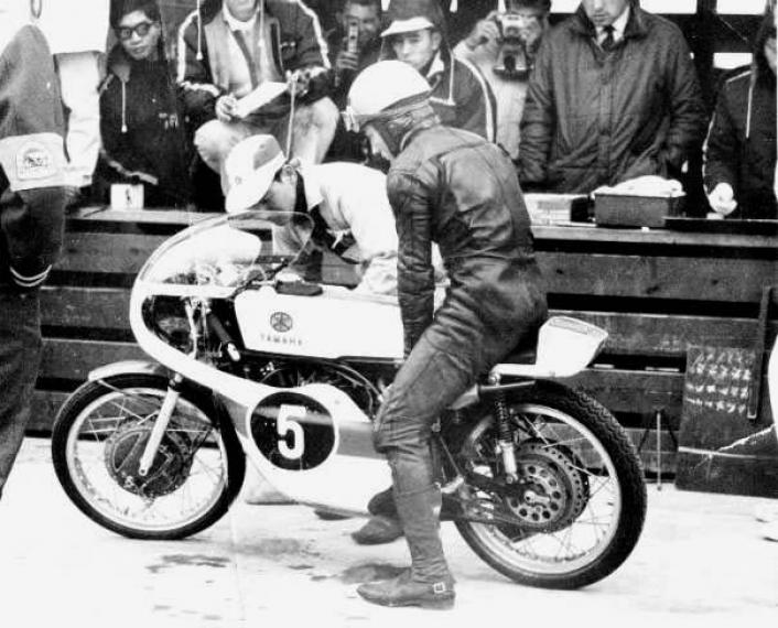 Thanks to Dave Martin for this picture of Bill Ivy. He was leading the 125cc class in the Canadian GP by so much that he pulled in and changed plugs to be on the safe side and rejoined the race still in the lead!