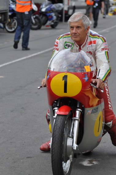 The truly great Ago appearing at the 2011 Festival of 1000 Bikes at Mallory Park. The bike is an MV Agusta 500/3.