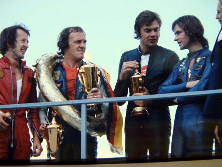 Add Your Photos!Thanks to Rudi Senghaas for this great picture of John Dodds, Stanley Woods, Dieter Braun and Barry Sheene taken at a Formula 750 world series race in Hockenheim in the early seventies..