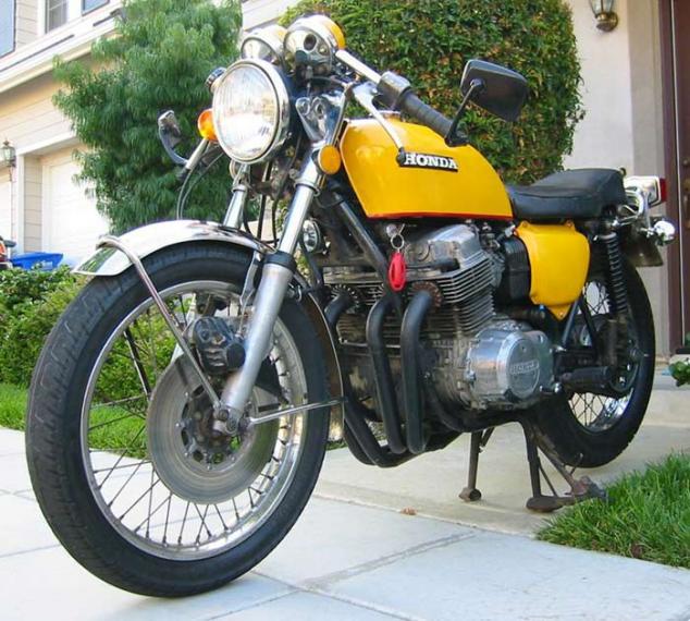 Add Your Photos!Thanks to Nik Hall for sending me this picture of his Honda CB750/4 complete with drop bars, CB550 forks & front wheel. Hooker pipes. Fun!