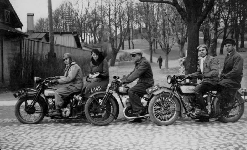 Add Your Photos!Many thanks Henry Nieminen for this great picture taken in Tallin, Estonia in the 1920′s. The outer two bikes are certainly Indians, but I can’t quite make out the middle bike. Nice picture!