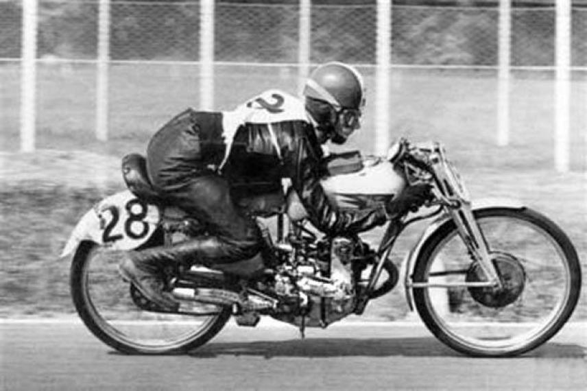 Thanks to Dave Martin for this picture of Luigi Zinzani on a Morini 125cc at Monza in 1951.