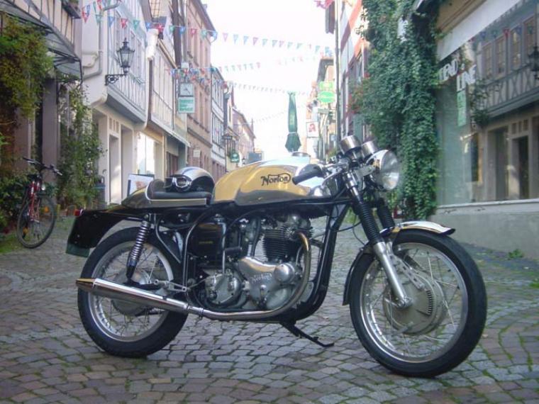 Add Your Photos!Many thanks to Heiner Schwacke from near Frankfurt for this picture of his Norton. He built this from a slimline frame, a Commando motor, Akront rims, Grimeca front break (replica) Seat and tank from the Tank Shop, Dundee, Magura clip-on’s, external oilfilter, etc. etc.