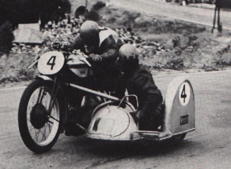 Eric Oliver and Denis Jenkinson on the very rare 596cc Norton. There were about 6 of these made just before WW2