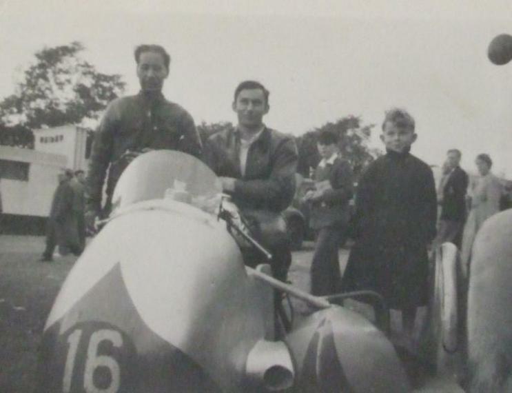 Add Your Photos!Thanks to Richard Sharp for this picture of Pete Woollett in the 1950 with his Watsonian outfit. Richard is the young lad n the right.
