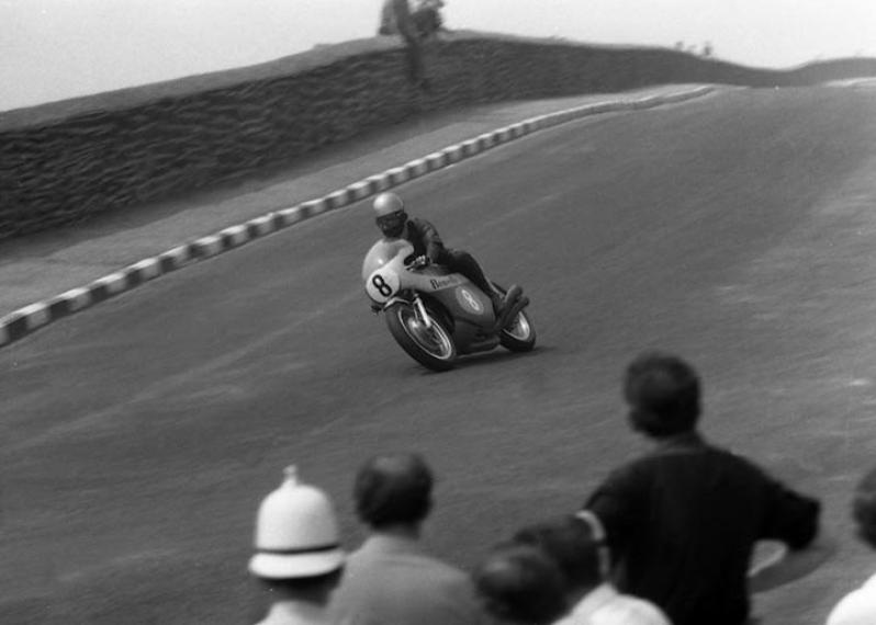 Renso Pasolini on his Benelli 350/4 at Signpost on the Isle of Man in 1970. Thanks to Bill Dobson for this picture.