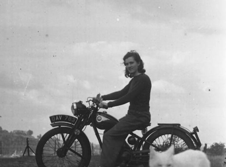 This lovely picture was kindly sent in by William Reece. Rather amazingly, I have been contacted by the lady in the picture! The photo is of Michelle Hackstetter (Philip) but the bike is her cousin Florrie Philip’s bike. Florrie’s was green and her brothers was black. taken in Belgium in the summer of 1949.  Michelle believes that the picture was taken in Eaglesham near Glasgow.  Another photo of Michelle is now attached.  This was taken in Belgium in 1949.
