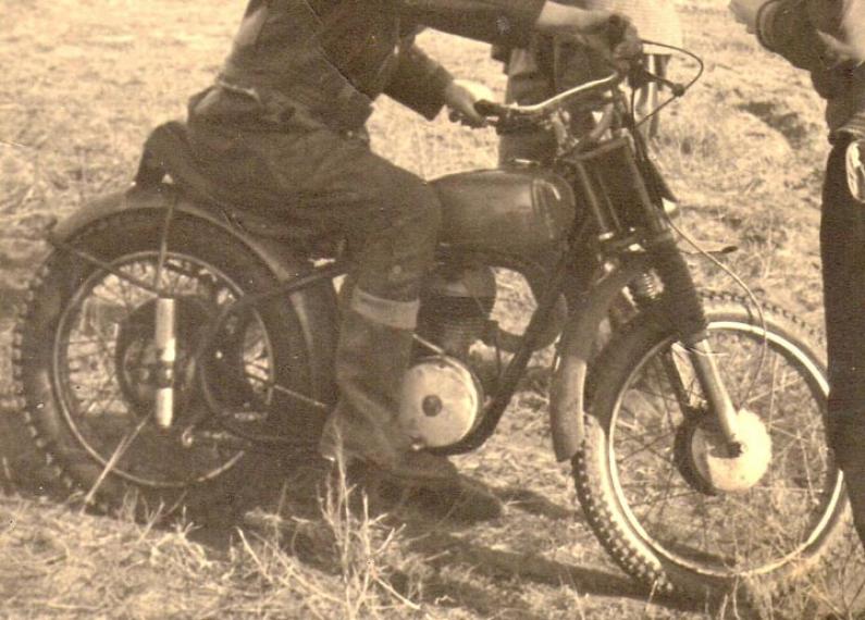 Thanks to Gus Priem of Oz for sending me these pictures. Gus modified this bike by lengthening it by 1". The tank was from a Francis Barnett and it used an outside coil and condensor.