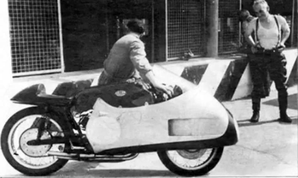 1. I thought he was a Guzzi rider then (the fairing indicates the years 1954 or 1955).