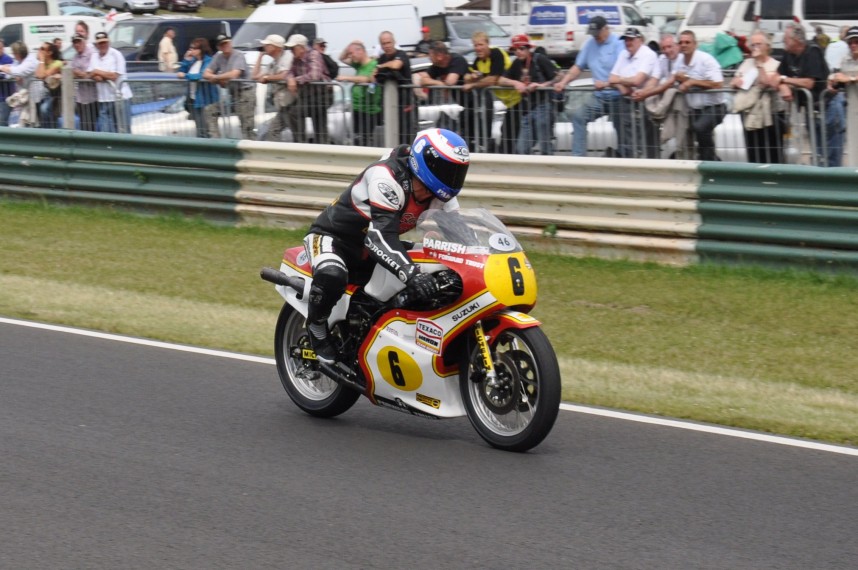 Steve Parrish on a Suzuki RG500 at Mallory Park.