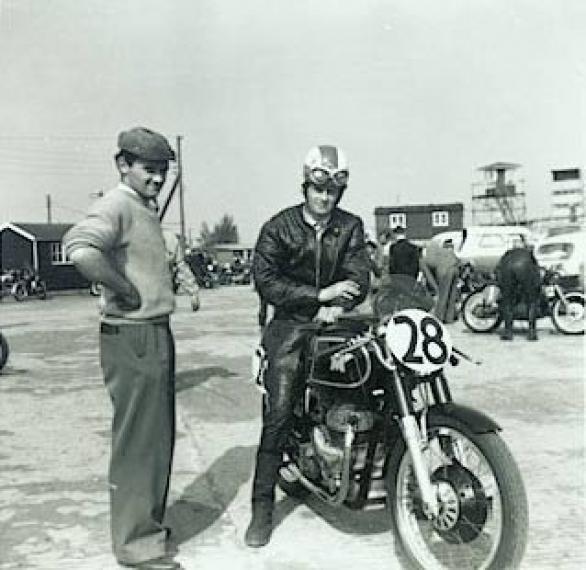 Add Your Photos!Thanks to Ray Kilminster for this picture of Terry Turner on his Matchless G45 with Ray Kilminster stood by his side. This was taken in the Silverstone Paddock 1956-57. This Matchless when new was owned by Charlie Salt and came Third in the 1953 Manx Grand Prix.