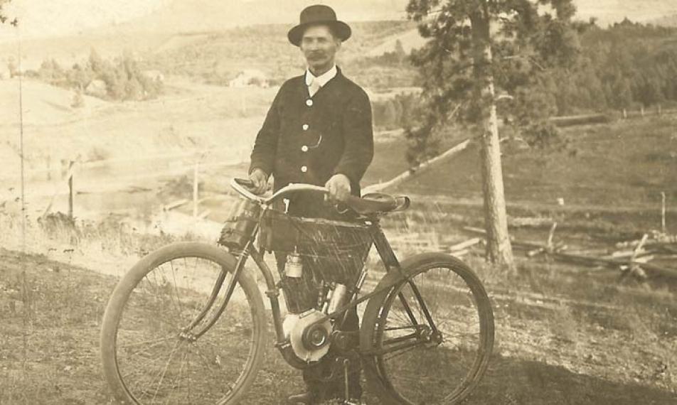 Add Your Photos!Many thanks to Mark Brandvold for this charming piece of history. It shows his great-grandfather of Idaho, USA astride a Merkel.