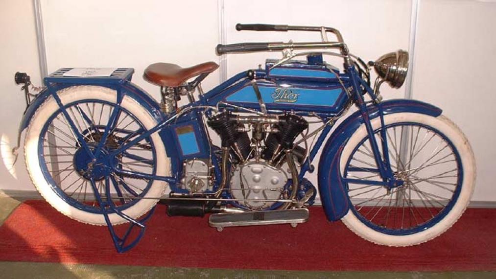 The bike pictured is a 1916 Thor. The 1915 model had a cast iron 2 speed transmission in the rear whell. The 1916 has a 3 speed conventional transmission as shown.