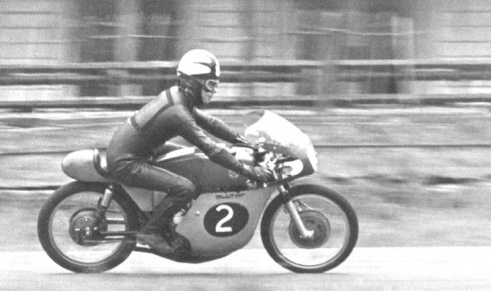 Thanks to Roger Kirby for sending this picture of Tommy Robb on a 125cc Bultaco at the International Trophy meeting at Oulton Park in 1967.
