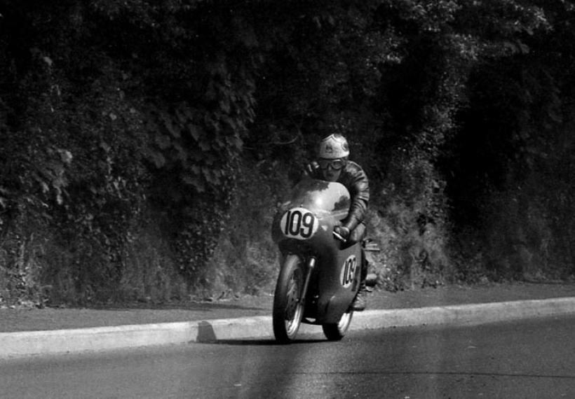 Tony Jefferies on his 490cc Triumph at Greeba Bridge on the Isle of Man in 1969. Thanks to Bill Dobson for the picture.