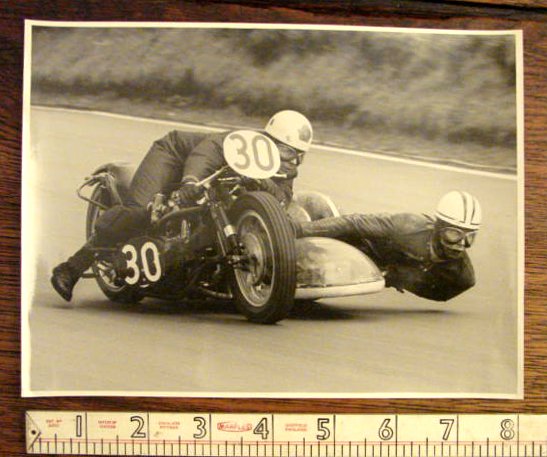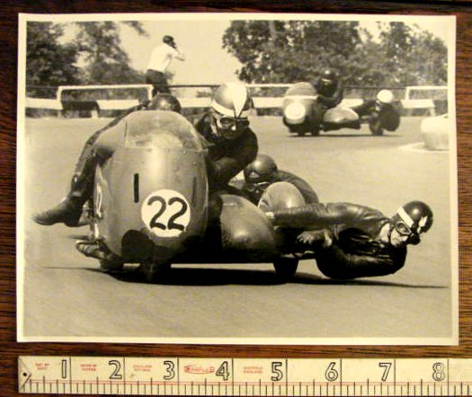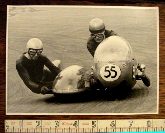 Number 55 is Georg Auerbacher and D Eduard. Photo taken at Mallory Sidecar Race of the Year 11th April 1965