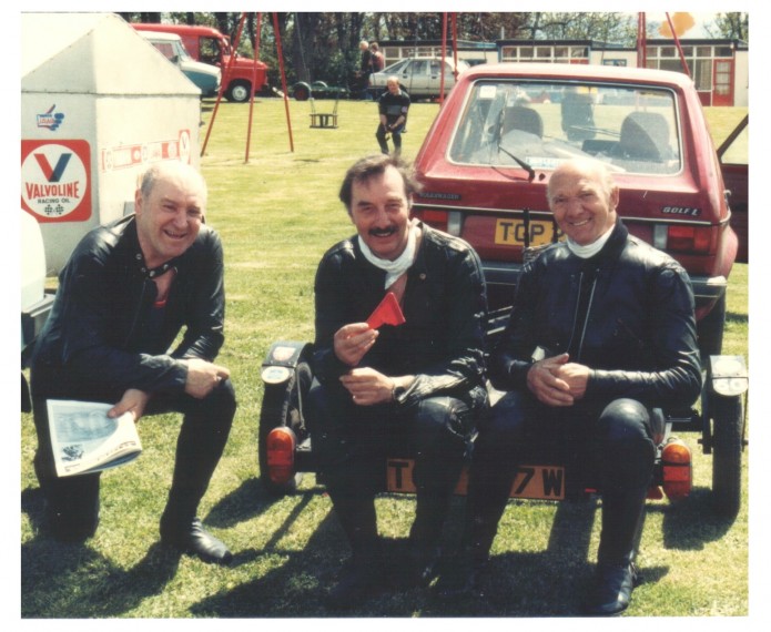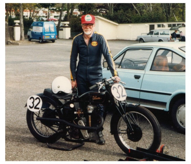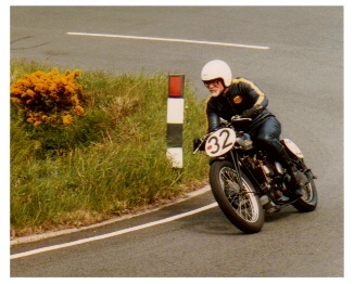 Add Your Photos!This Velo was put together from parts by a guy in the midlands. It was based around a KTS frame with a KSS engine. The compression ratio was raised to about 9:1 and KTT cams were used. Judging from my terminal velocities when I sprinted it, I think it was capable of just under 100mph pulling its highest gear. I was using that gear when I took it to the IoM in 1986 to ride it in the TTRA Lap of Honour when my (very unofficial) lap-time was 33mins by the Grand Stand clock. This Post comes with a few more shots from that event……. We found ourselves parked next to Franta Stastny the Chekoslavakian JAWA works rider and he and Bill Lomas came and sat on my bike-trailer for a chat (and broke my reflector, which Bill is holding up). There is a shot of my velo at “The Gooseneck” and another on “The Mountain Mile”.