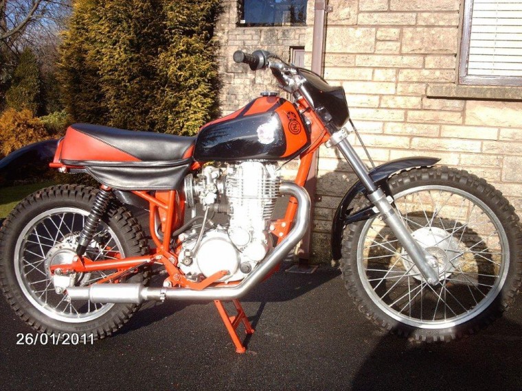 Many thanks to Peter for these pictures of his bike. Its a Yamaha XT 500 engine popped in a 1974 FALTA REP CZ mx frame. Very nice!